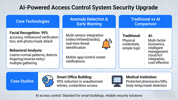 隨著AI人工智能技術的快速發展,傳統門禁系統正經歷革命性變革。本文將深入探討AI如何通過人臉識別、行為分析和異常檢測等技術,大幅提升大廈安防等級,並分享實際應用案例與商業價值。
