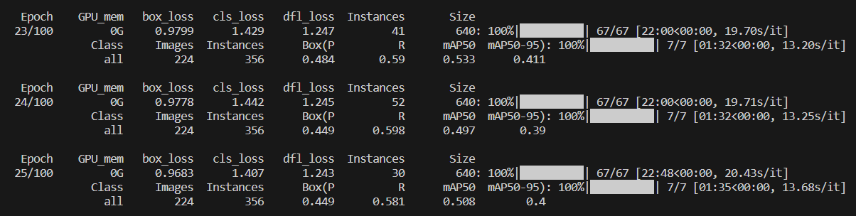 以上圖而言,在第23輪的訓練其精度為48.4%,F1召回率為59%