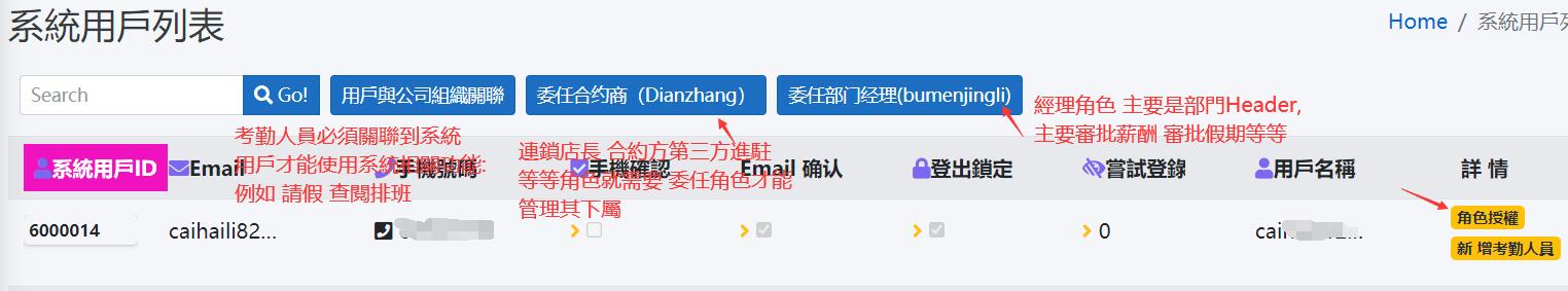 Employee: 員工角色, 如果考勤人員需要使用系統功能,如手機APP,則需要授予這個角色, 只要關聯系統用戶就可以自動授予該角色。