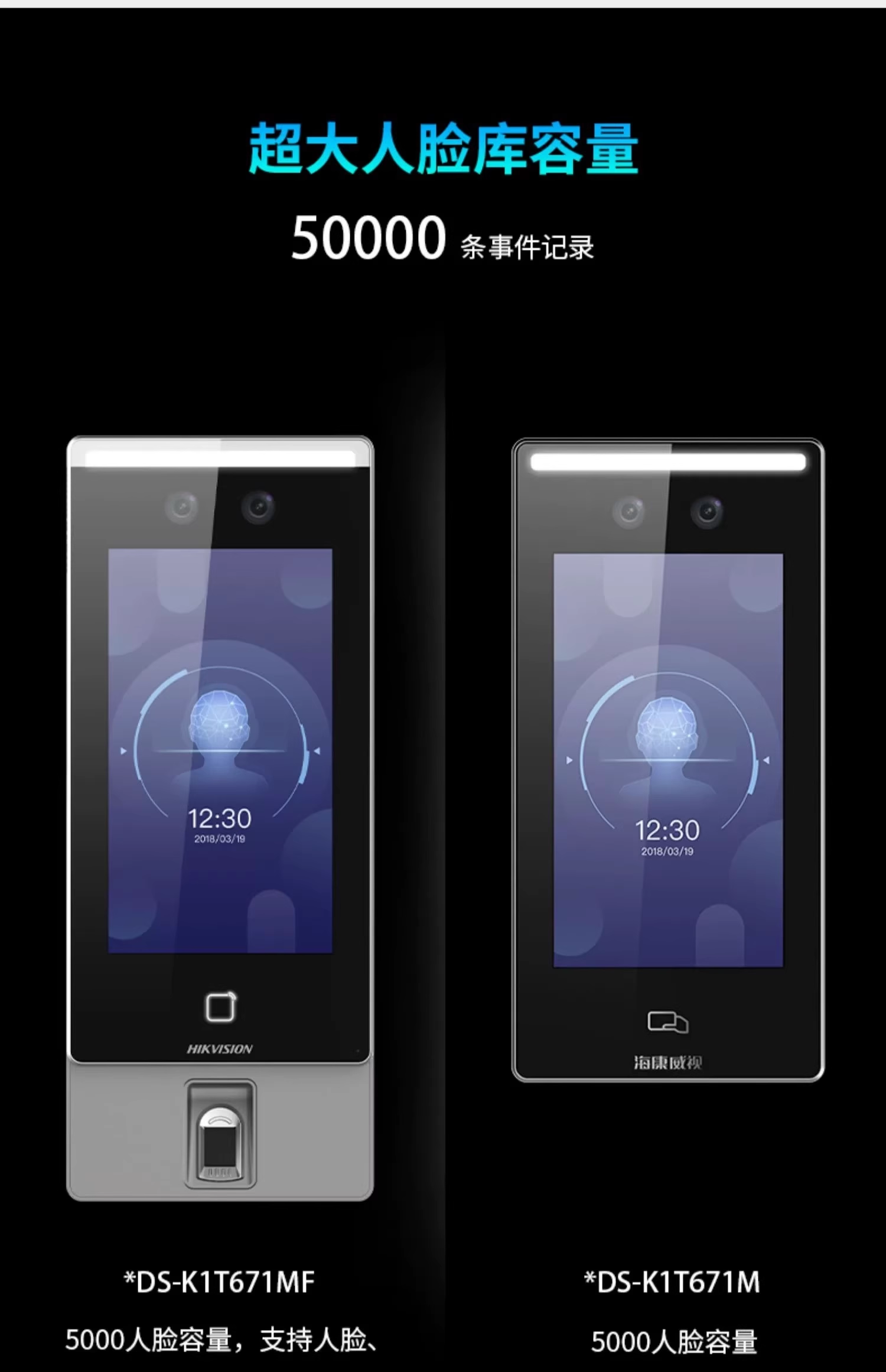 > 6,000 face capacity, 5,000 fingerprint capacity, and 50,000 event capacity