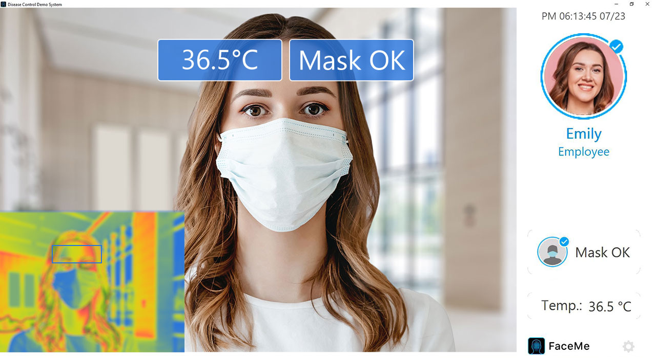 SEETA FACE 6 可輕松地部署在個人電腦上,透過USB連接熱感應攝影機以執行非接觸性的健康量測功能,確保辦公室,門市或餐廳的安全: