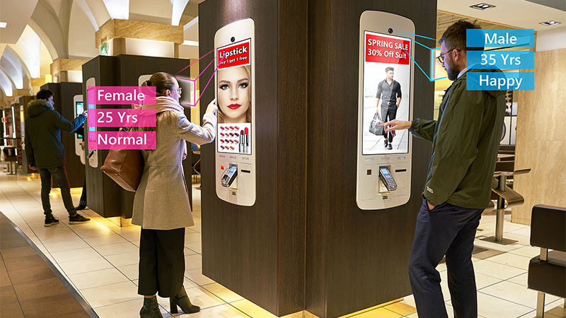 創新了零售市場,并提供全新、引人注目的客戶體驗,這項技術不僅提供精確的人流統計資訊,更可于數位電子看板進行分眾式廣告、辨別VIP客戶,同時搜集訪客的年齡、性別組合、情緒狀態、在特定區域停留的時間等數據。