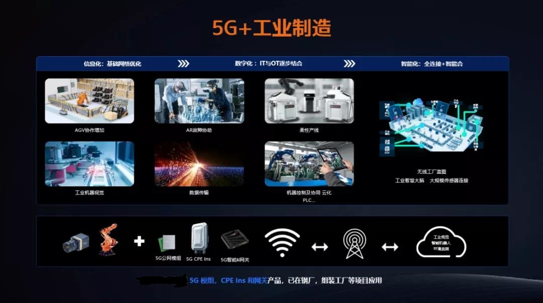 具體而言,通過5G工業CPE,AI網關,5G模組等終端模組,鼎橋通信實現了5G與工業互聯網的融合,5G工業CPE可以為工業園區提供5G信號覆蓋,使攝像頭,機械臂等設備連接5G網絡進行數據回傳。