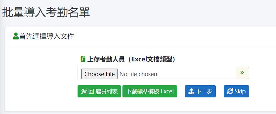 下載標準的考勤人員名單列表,然后按照標準的EXCEL格式進行填寫,如已經有對應的EXCEL考勤人員名單,則請按照模板的表格形式編輯處理一下,然后上存后,點擊下一步。