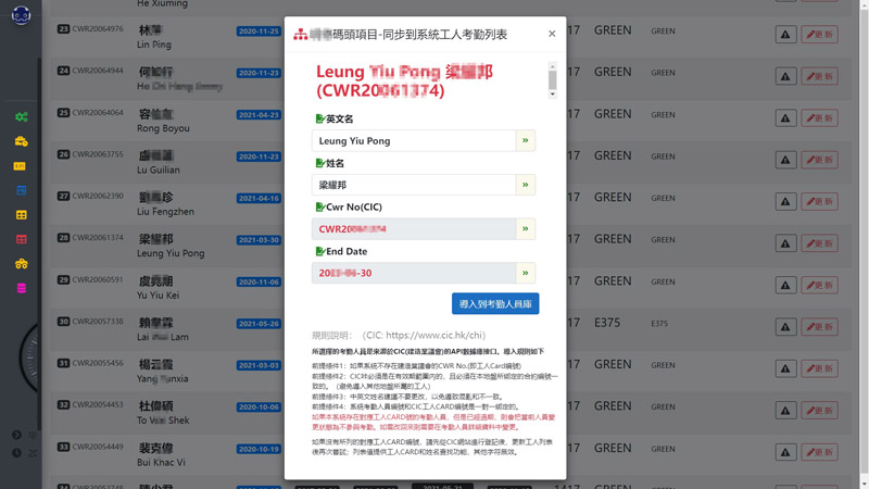 第二步:成功導入考勤人員后,需要進入響應編輯界面進行相關操作,并選擇對應需要存入檔案的,提交后會提示是否成功存檔。提示成功的,才會正式成為系統考勤人員。